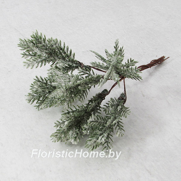 ЗЕЛЕНЬ ветка Ели заснеженной в глиттере 6 шт., L 14 см, 0 - в ассортименте