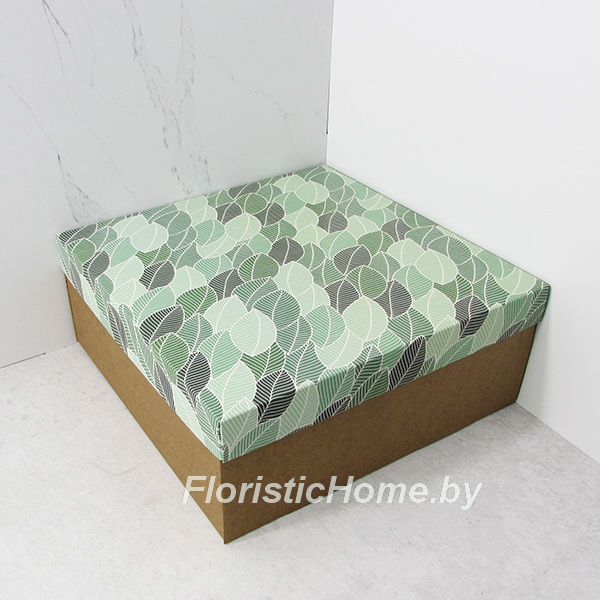 КОРОБКА 25 см х 25 см х 10 см, "Листики" c крафт дном