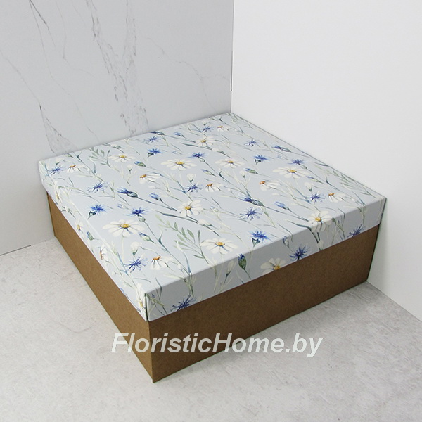 КОРОБКА 25 см х 25 см х 10 см, "Полевые цветы" c крафт дном