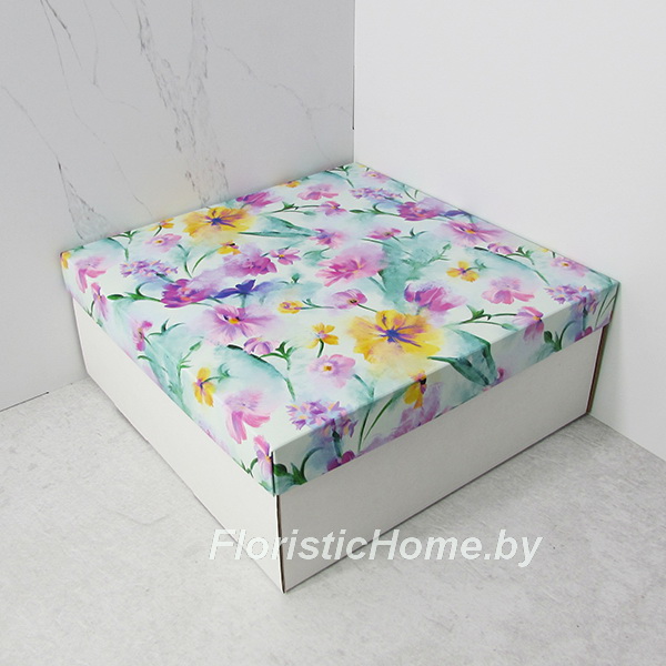 КОРОБКА 31 см х 31 см х 12 см, "Акварель" c белым дном