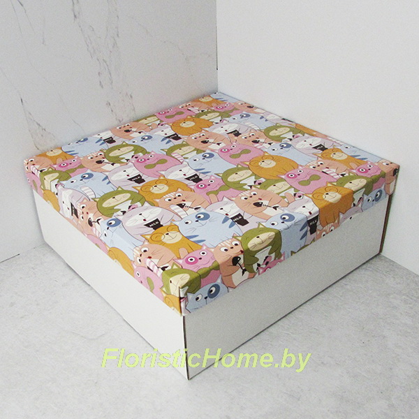 КОРОБКА 31 см х 31 см х 12 см, "Коты с рыбкой" c белым дном