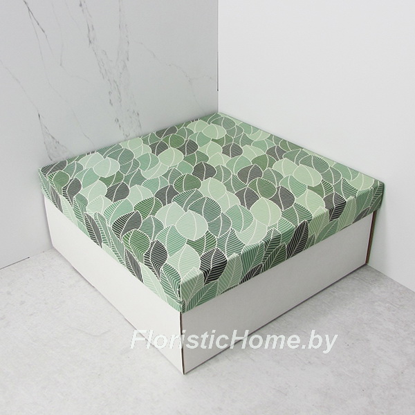 КОРОБКА 31 см х 31 см х 12 см, "Листики" c белым дном