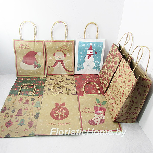 КРАФТ-ПАКЕТ Цветной (с рис. "Новый год") с кручеными ручками, 15 см х 21 см х 8 см, 0 - в ассортимен