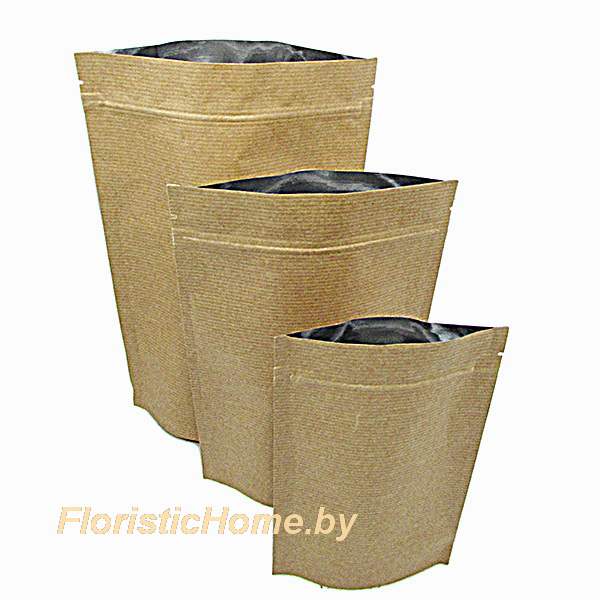 ПАКЕТ Дой-пак бумажный двухслойный (металл), с ЗИП-замком, 13,5 см х 22,5 см + (3,5+3,5) , 0 - в асс
