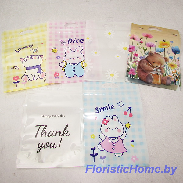 ПАКЕТ Дой-пак с рисунком, с ЗИП-замком, 15 см х 22,5 см + (3,5+4,5) , 0 - в ассортименте