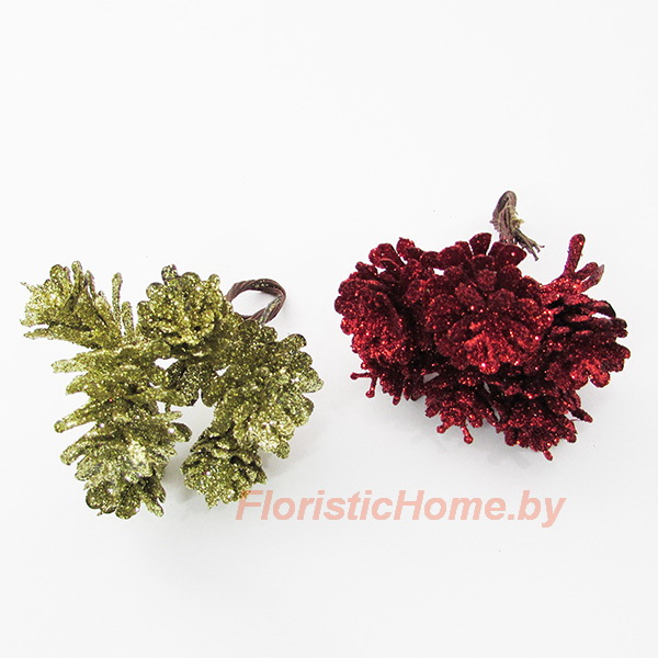 Шишка в глиттере 6 шт. в связке d 2,5 см х L 4 см, 0 - в ассортименте