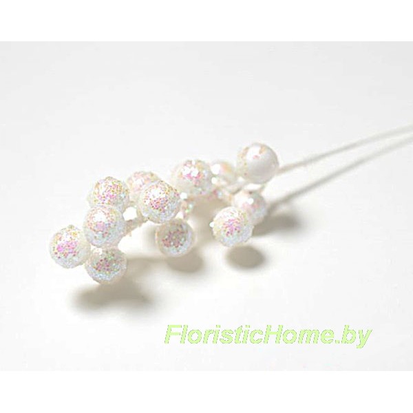 Ветка с ягодами в блестках перламутр, L 20 см, 0 - в ассортименте