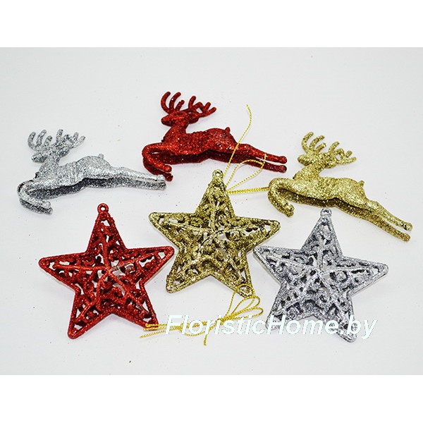 ДЕКОР НГ украшения, 3 шт. в глиттере (6,5), d 6-10 см, 0 - в ассортименте