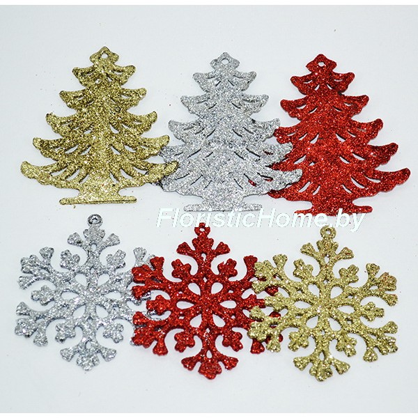 ДЕКОР НГ украшения, 4 шт. в глиттере (4,5), d 6-10 см, 0 - в ассортименте