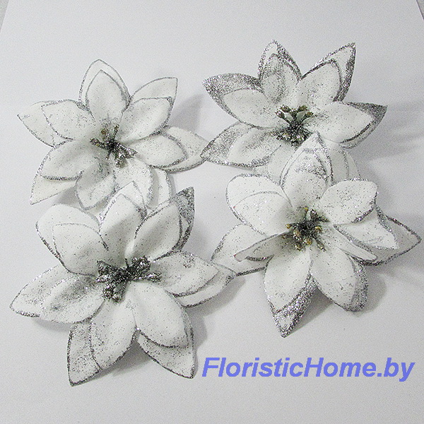ДЕКОР Пуансеттия бархат, 4 шт. в упак., d 11 см, 0 - в ассортименте