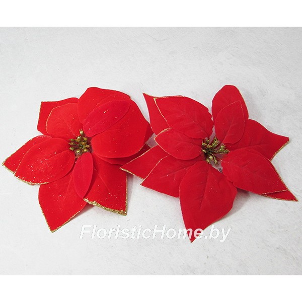 ДЕКОР Пуансеттия бархат c глит.кантом, 1 шт., d 22 см, 0 - в ассортименте