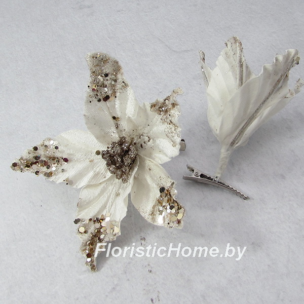 ДЕКОР Пуансеттия с заколкой в глиттере, 1 шт., d 15 см, 0 - в ассортименте