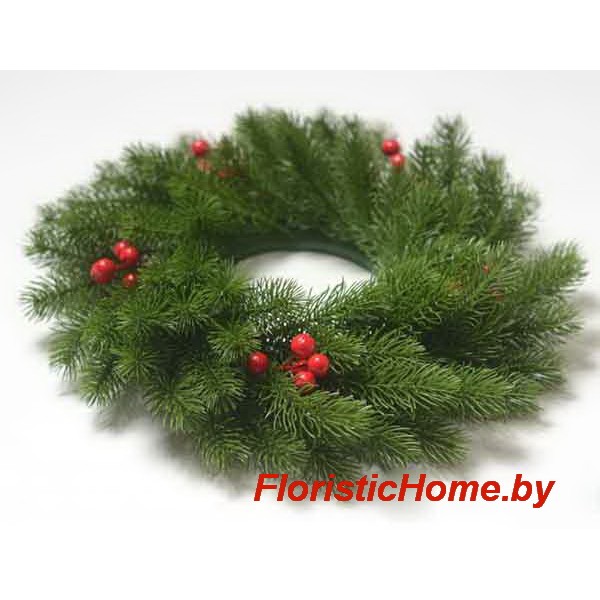 ВЕНОК из искусств. еловых лапок с гроздью ягод, d 33 см, 0 - в ассортименте