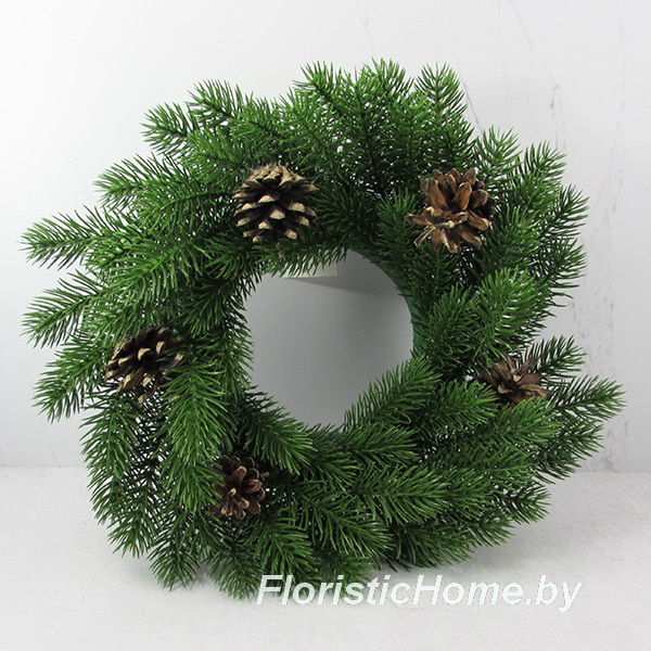 ВЕНОК из искусств. еловых лапок с нат. шишкой , d 35 см, 0 - в ассортименте
