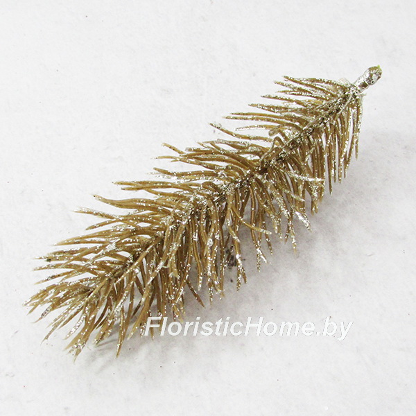 ВЕТКА Лапка елки одиночная в глиттере, L 8 - 13 см, золотой